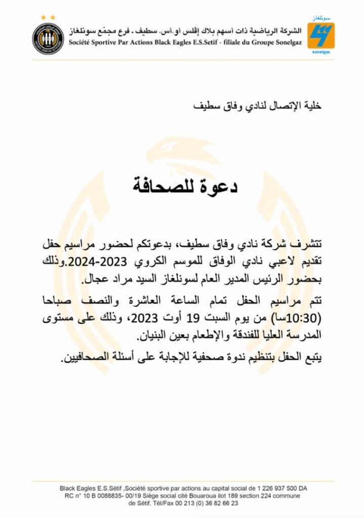 الوفاق السطايفي يقدم لاعبيه الجدد والطاقم الفني هذا السبت