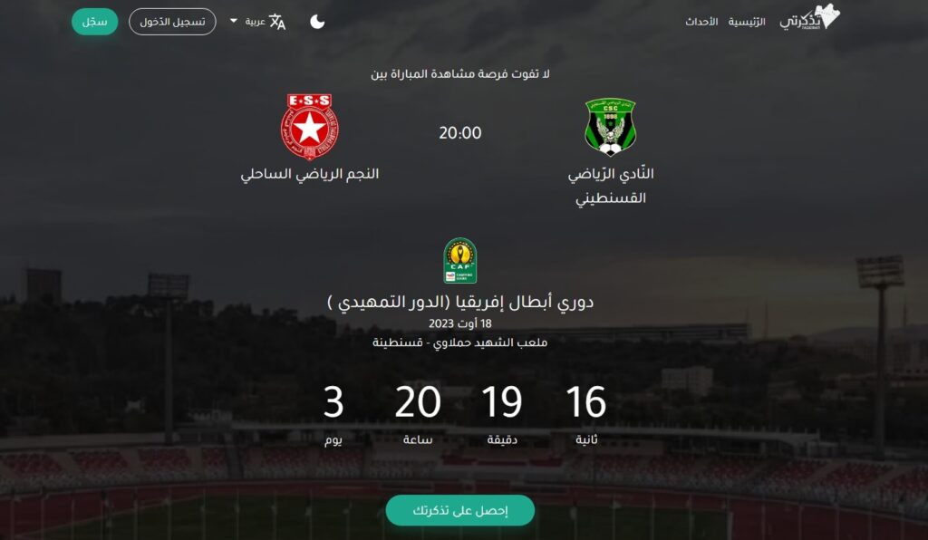 انطلاق عملية تذاكر شباب قسنطينة و النجم الساحلي تحسبا لكأس رابطة أبطال إفريقيا