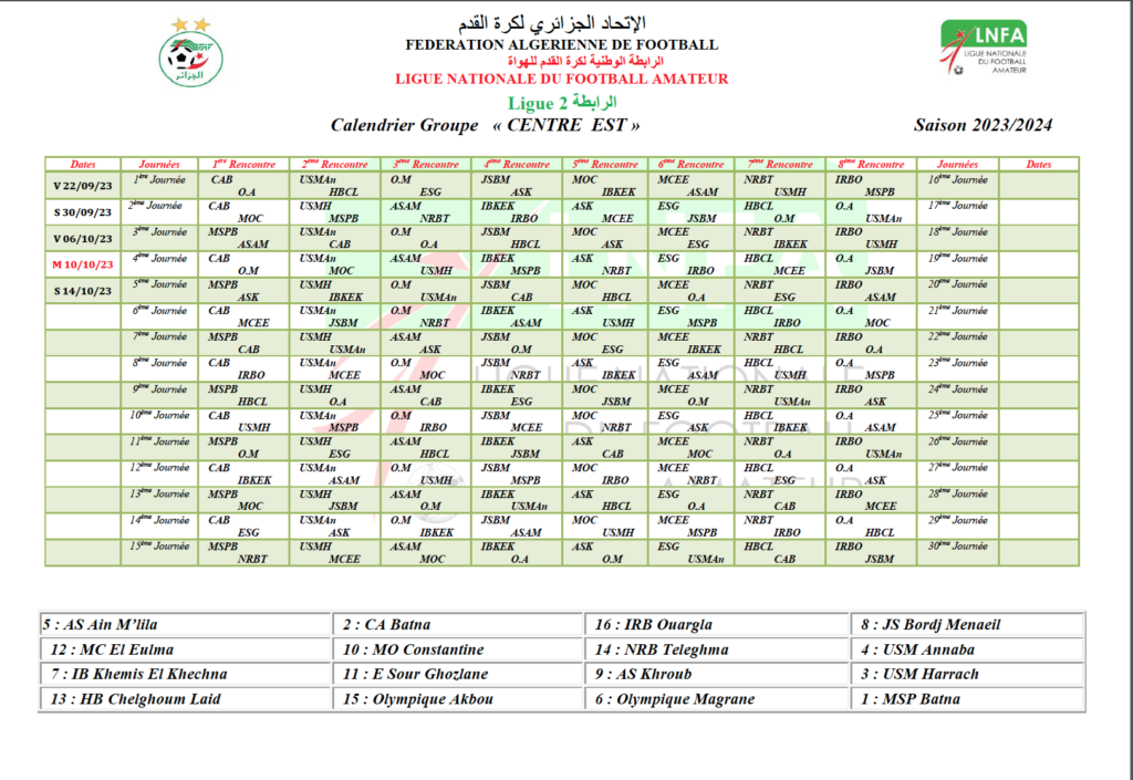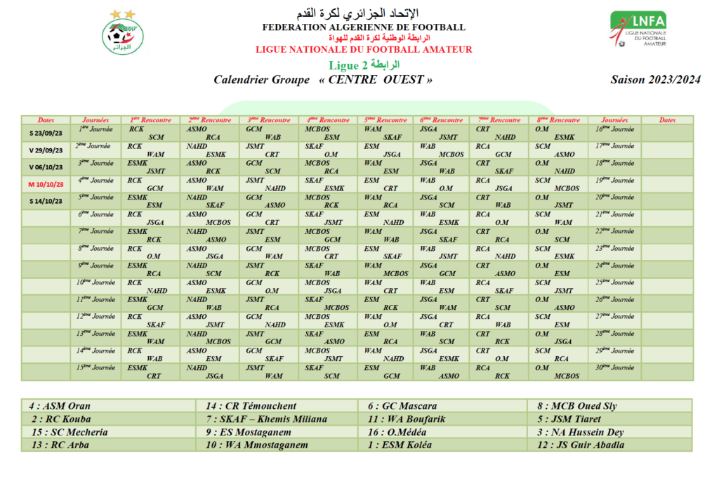 الدوري الجزائريالقسم الوطني الثاني شرقالقسم الوطني الثاني غرب
