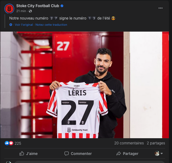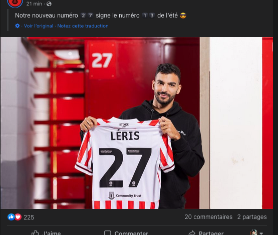 إلتحق الدولي الجزائري مهدي ليريس بنادي ستوك سيتي الإنجليزي قادما من نادي سامبدوريا الإيطالي بعقد يمتد لثلاث مواسم .. لللإشارة فإن ليريس سقط رفقة نادي سامبدوريا الإيطالي إلى السيري ب ما دفعه للبحث عن ناد جديد قبل موسم واحد عن نهاية عقده مع النادي الإيطالي.