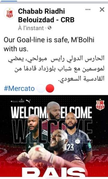 أعلنت إدارة شباب بلوزداد عن تعاقدها مع الحارس الدولي الجزائري رايس وهاب مبولحي لموسمين قادما من القادسية السعودية