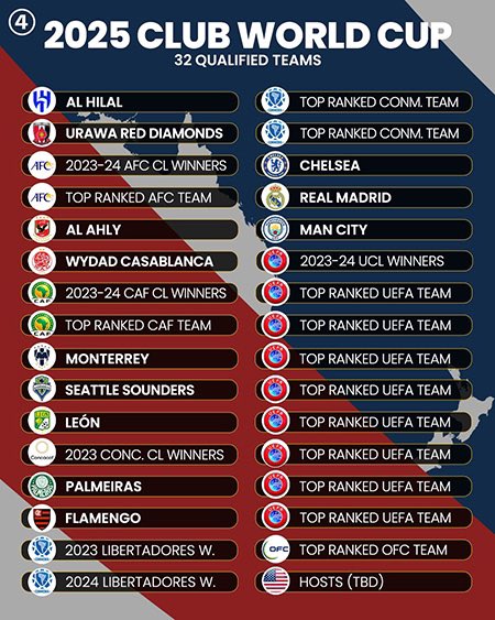 نالت المنتخبات الإفريقية أربعة مقاعد في النسخة الأولى من كأس العالم للأندية 2025 في نسختها الجديدة والتي تضم 32 منتخبا فيها، وسيكون ناديا الأهلي المصري والوداد البيضاوي أول ممثلين، إضافة إلى المتوج هذا الموسم برابطة أبطال إفريقيا للموسم الجاري، إضافة إلى الفريق الأفضل تصنيفا في تصنيف الكاف السنوي، وتضم قائمة الأندية المشاركة كبار الأندية العالمية على غرار مانشستر سيتي، ريال مدريد، تشيلسي، إضافة الهلال السعودي وأوراوا الياباني، وأبطال القارات الخمس والأندية الأكثر تصنيفا فيا لعالم.