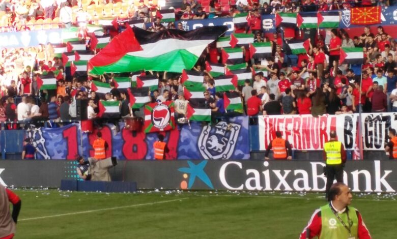 حرصت جماهير فريق أوساسونا، على دعم القضية الفلسطينية، خلال مواجهة فريقها أمام غرناطة التي جرت سهرة الجمعة  على ملعب “أل سادار”، فى افتتاح منافسات الجولة العاشرة من الدوري الإسباني…. ورفعت جماهير أوساسونا الأعلام الفلسطينية، لدعم الشعب الفلسطيني، وغزة التي تتعرض لقصف وحشي من قوات الاحتلال الصهيوني…  وقامت جماهير بدعم الشعب الفلسطيني رغم إصدار رئيس رابطة الليغا، خافيير تيباس، قرارا بمنع رفع الأعلام فى مدرجات الملاعب…