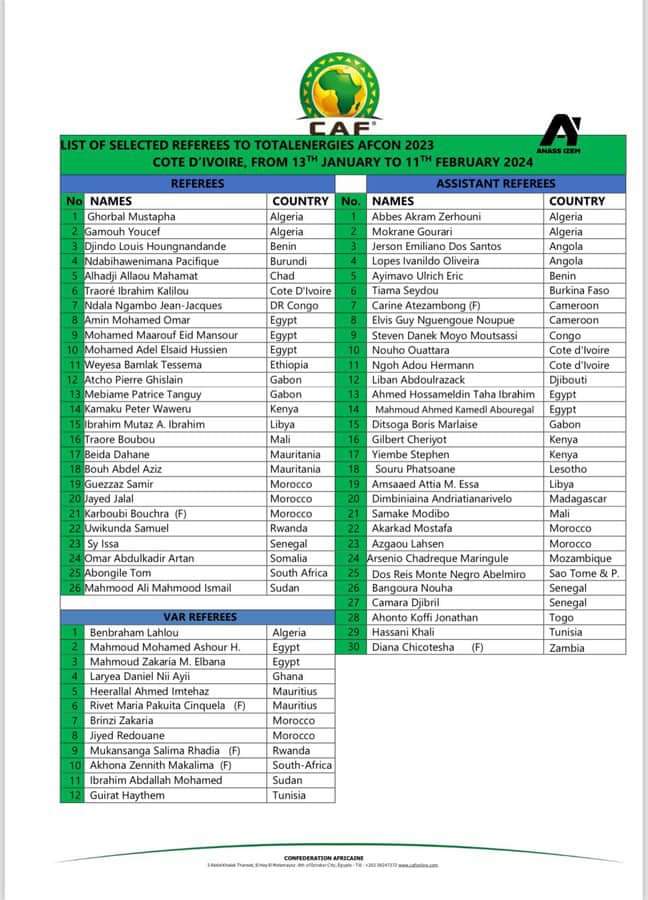 أعلن الإتحاد الإفريقي لكرة القدم الخميس عن قائمة الحكام المعنيين بإدارة مباريات الكان القادم بداية من الثالث عشر جانفي الداخل بكوت ديفوار… وستكون الصافرة الجزائرية ممثلة بخمسة حكام في هذه المنافسة ويتعلق الأمر بكل من غربال مصطفى وقاموح يوسف كحكمي ساحة بالإضافة إلى كل من زرهوني عباس وقوراري يوسف كحكام راية بينما سيكون لحلو بن براهم وحيدا كحكم تقنية الفيديو “فار”.