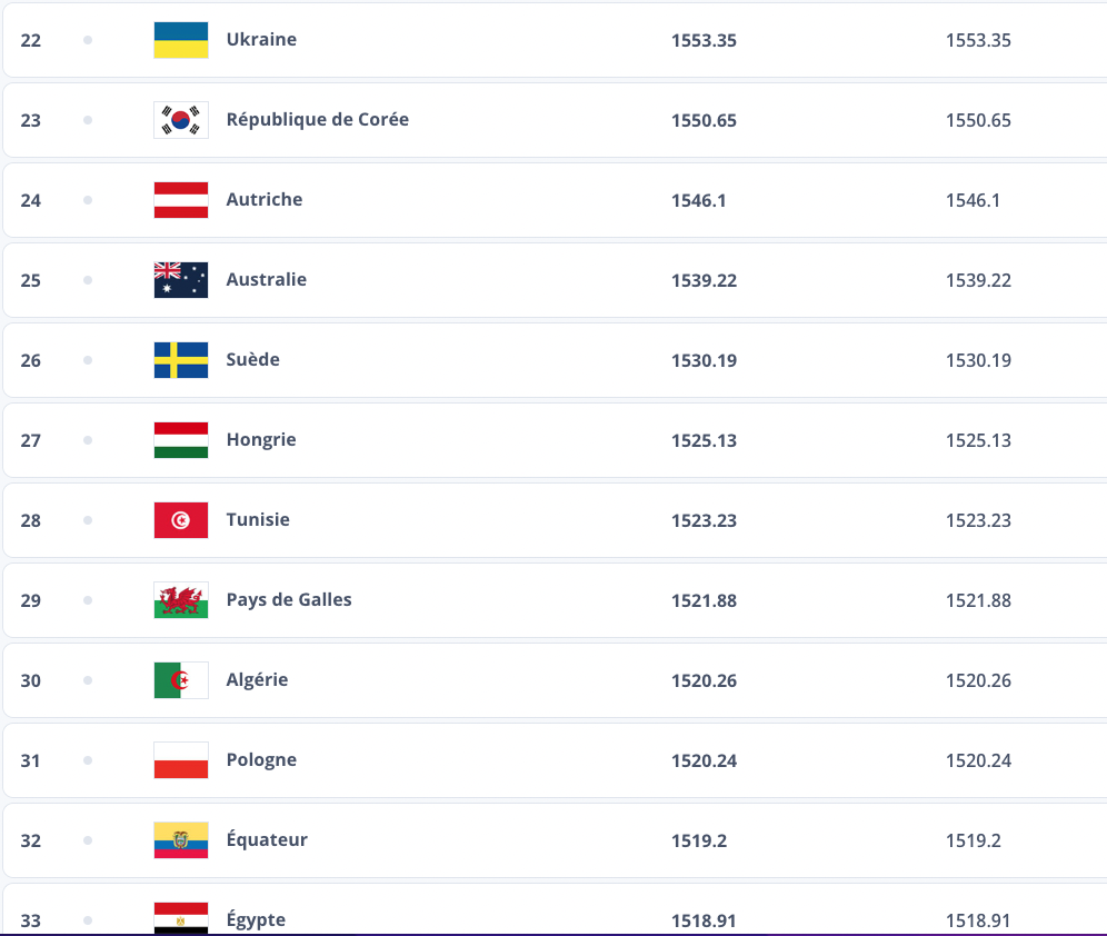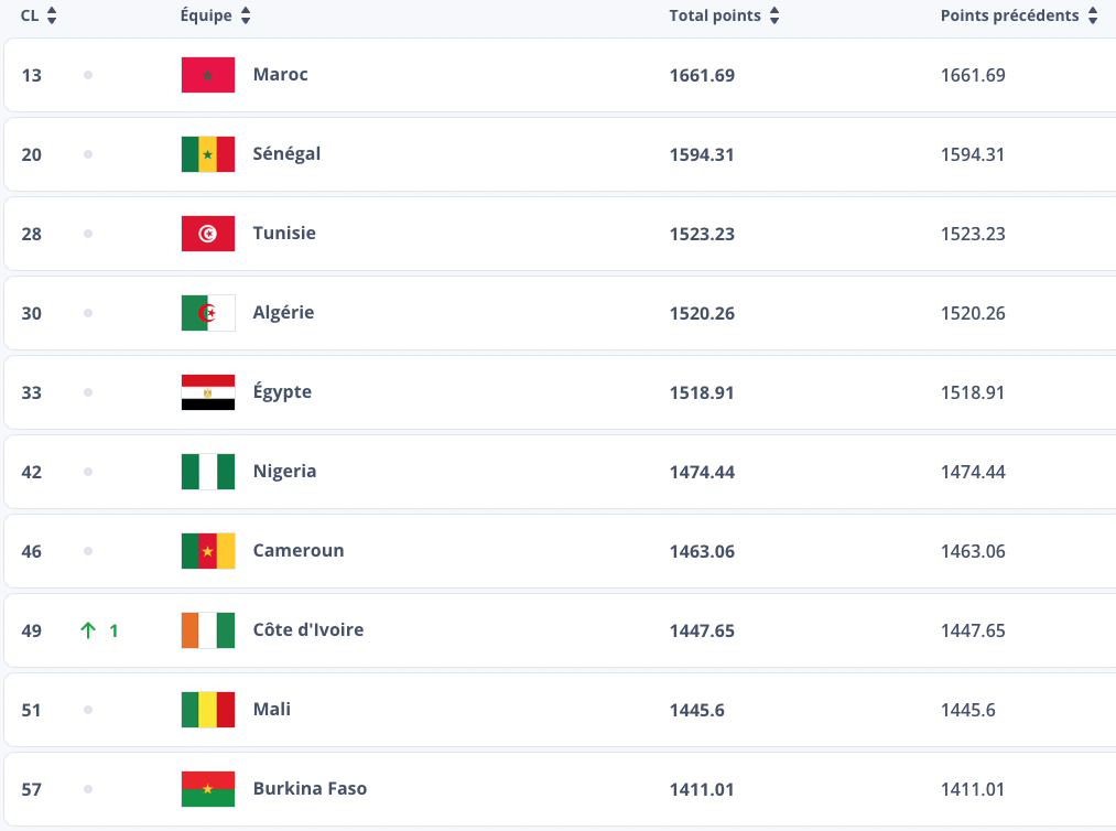 تعرف المنتخب الوطني على ترتيبه في التصنيف العالمي الجديد، للاتحاد الدولي لكرة القدم “الفيفا”… وكشفت عبر موقعها الرسمي تصنيفها الجديد للمنتخبات، والذي حافظ فيه أشبال بلماضي على مركزه الـ30 عالميا، كما حافظ محاربو الصحراء على المركز الرابع إفريقيا بعد كل من منتخبات، المغرب، السنغال، وتونس، في حين احتل الخضر المركز الثالث عربيا، ويأتي هذا التصنيف الأخير للاتحاد الدولي لكرة القدم، قبل أسابيع معدودة عن انطلاق منافسة كأس أمم إفريقيا 2023 والمقررة بكوت ديفوار بداية جانفي المقبل. هذا وحافظ المركز الأرجنتيني على المرتبة الأولى عالمية، في حين احتلت فرنسا المرتبة الثانية، وجاءت إنجلترا ثالثة وبلجيكا رابعة.