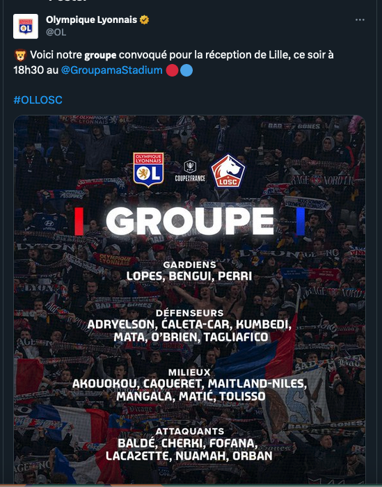 واصل الدولي الجزائري سعيد بن رحمة الغياب عن قائمة فريقه ليون للمباراة الثانية ليتأجل أول ظهور للدولي الجزائري مع ليون مرة أخرى، ويعود سبب غياب بن رحمة عن قائمة ليون في لقاء ليل للعقوبة التي تعرض لها في انجلترا رفقة ناديه السابق وست هام بعدما طرد بن رحمة في اخر مباراة مع ويست هام أمام بريستول سيتي في كأس إنجلترا، وهي العقوبة التي تحرمه من التواجد في قائمة ليون أمام ليل.