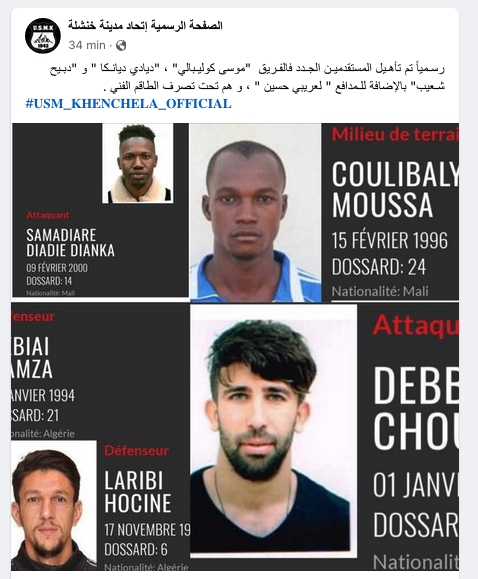 اعلنت ادارة اتحاد خنشلة الخميس ان اللاعبين الجدد المستقدمين خلال فترة التحويلات الشتوية تم تاهيلهم رسميا…. واكدت ادارة خنشلة ان موسى كوليبالي .. ديادي ديانكا .. دبيح شعيب.. ولعربي حسين هم تحت تصرف الطاقم الفني للفريق…