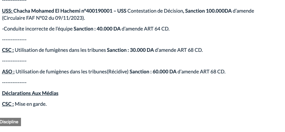 كشفت لجنة الانضباط التابعة للرابطة المحترفة سهرة الإثنين عن قراراتها الخاصة بلقاءات الجولة 18 من الرابطة المحترفة الأولى، وأعلنت ذات اللجنة عن إبقاء ملف شباب قسنطينة مفتوحا وهو المتعلق بالتصريحات الإعلامية لرئيس النادي طارق عرامة مقررة بأن تبقي الملف مفتوحا، وكانت الهيئة الانضباطية قد استدعت في وقت سابق رئيس النادي عرامة، للاستماع إلى أقواله بخصوص تصريحاته التي أدلى بها بعد الهزيمة في الجولة 17 أمام مولودية الجزائر. ومن جانب آخر أصدرت اللجنة عدة غرامات مادية متفاوتة في حق اللاعبين، المدربين والأندية منها بسبب الاحتجاج أو بسبب رمي المقذوفات والألعاب النارية.