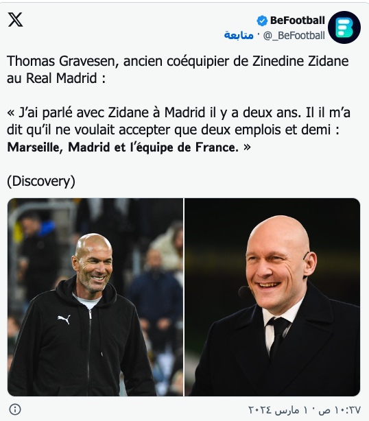 زيدان يريد تدريب منتخب فرنسا، الريال ومارسيليا