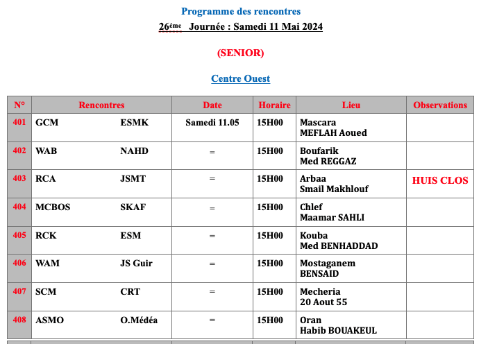 نشرت رابطة الهواة صبيحة الثلاثاء برنامج مباريات الجولة المقبلة من القسم الثاني هواة، وأكدت الرابطة في بيانها أن الجولة السادسة والعشرين ستلعب يوم السبت الحادي عشر ماي بقسميها وسط شرق ووسط غرب، كما ستلعب كل اللقاءات في توقيت موحد انطلاقا من الساعة الثالثة زوالا، وتطغى حسابات السقوط على مجموعة وسط شرق لعل أبرزها قمةوفاق سور الغزلان واتحاد الحراش، وكذا مباراة هلال ملغوم العيد وجمعية عين مليلة، إضافة لمباراة اتحاد عنابة واتحاد ورقلة، ونفس الشيء بالنسبة للمجموعة الغربية التي سيحتدم فيها صراع السقوط أيضا، في حين ستعرف الجولة قمة مباراة الصعود بين رائد القبة ثاني الترتيب الذي يستضيف المتصدر ترجي مستغانم.