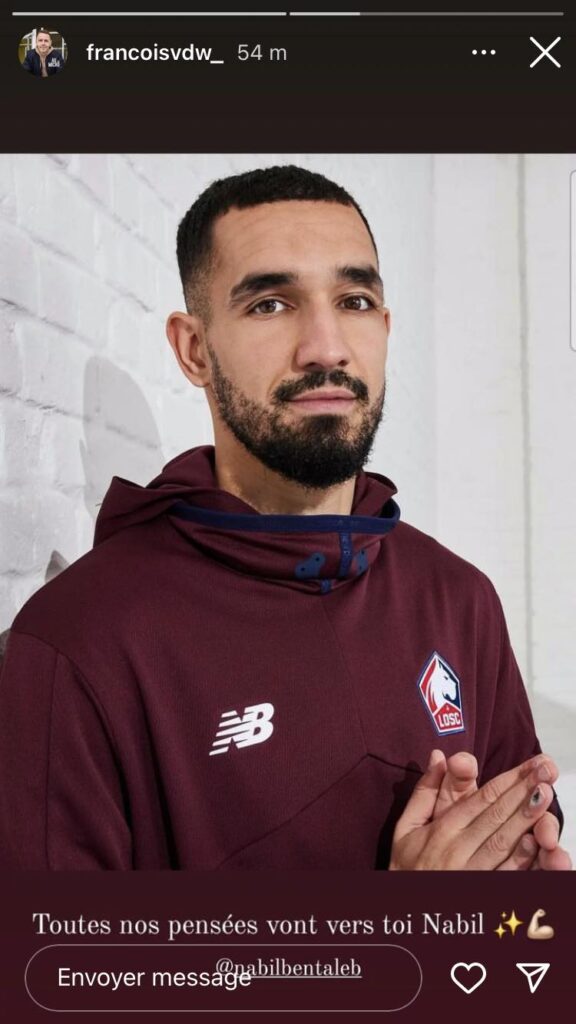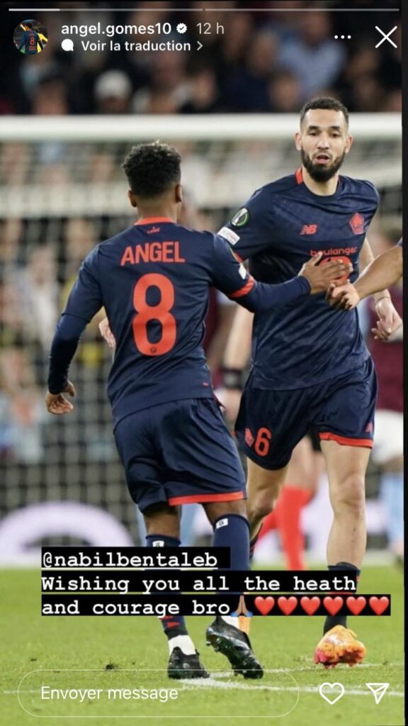 زملاء بن طالب في نادي ليل حيث كتب اللاعب ريمي كابيلا: “صديقي نبيل كن قويا في هذه اللحظات، نحن معك بجوارحنا، صلوا من أجل نبيل، نحن نحبك”