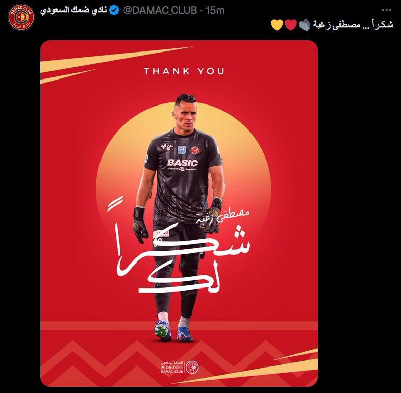 نادي ضمك يعلن رحيل الحارس مصطفى زغبة