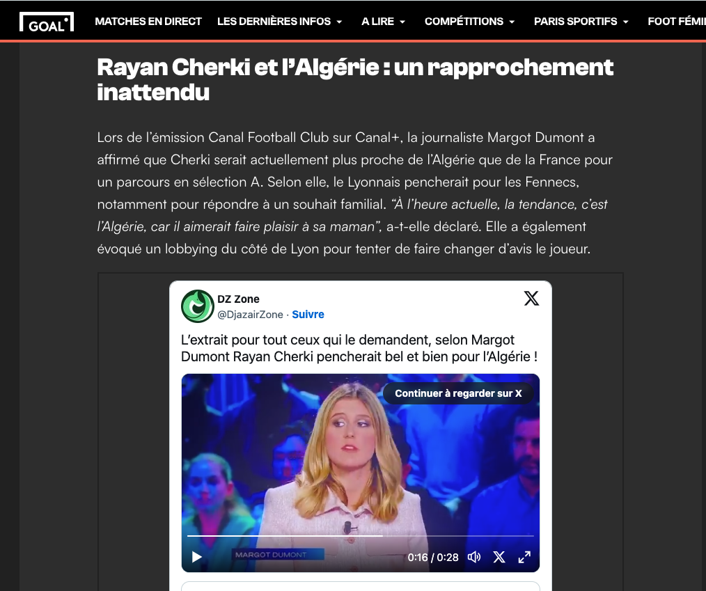 لا يقتصر الحديث في الإعلام الفرنسي، عن المستويات الراقية، التي يقدمها الفرانكو جزائري ريان شرقي، مع فريقه أولمبيك ليون، في المباريات الأخيرة، وإنما أيضا بمستقبله الدولي، الذي يواصل صنع الحدث في “بلاطوهات” الفرنسيين، الذين يمارسون ضغوطات كبيرة، على مدرب المنتخب الفرنسي “ديدي ديشان” لاستدعاء شرقي، في أقرب الآجال، لا سيما في ظل الأنباء، التي تؤكد إنه شرقي حسم اختياره، وقرر تمثيل المنتخب الجزائري، تلبية لرغبة والدته، موازاة مع ضغط شديد، يتعرض له، شرقي في محيط نادي أولمبيك ليون، لثنيه عن قرار تمثيل “الخضر”…لتبقى قضية شرقي جديرة بالمتابعة..