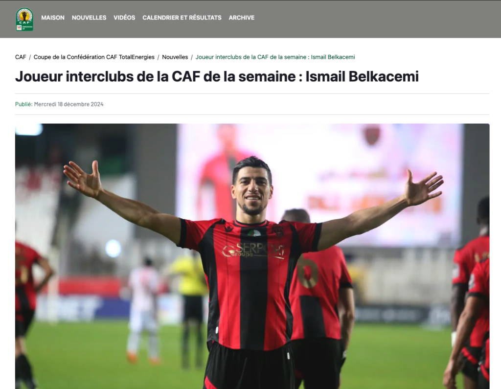 الكاف تختار بلقاسمي لاعب الأسبوع في كأس الكنفدرالية