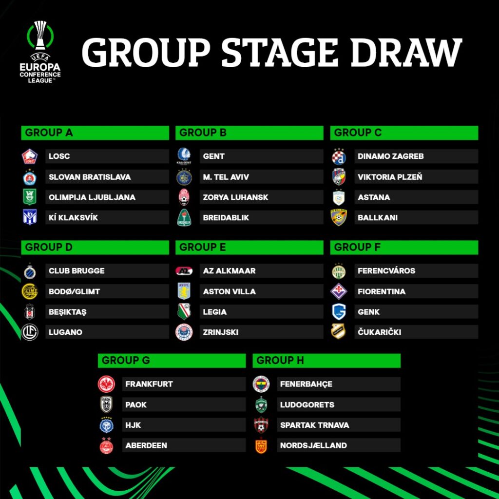 بينما سيكون أنتراخت فرانكفورت في المجموعة السابعة رفقة باوك سالونيكا أبردين وكذا نادي هلسنكي الفيرلندي.
